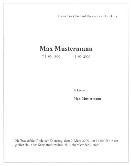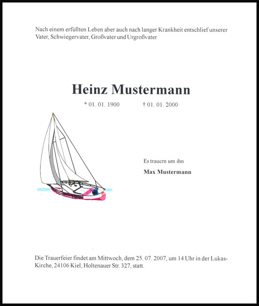 Traueranzeigen entwerfen wir nach Ihren Vorstellungen und schicken sie als PDF-Datei zu den von Ihnen gewünschten regionalen und überregionalen Zeitungen.